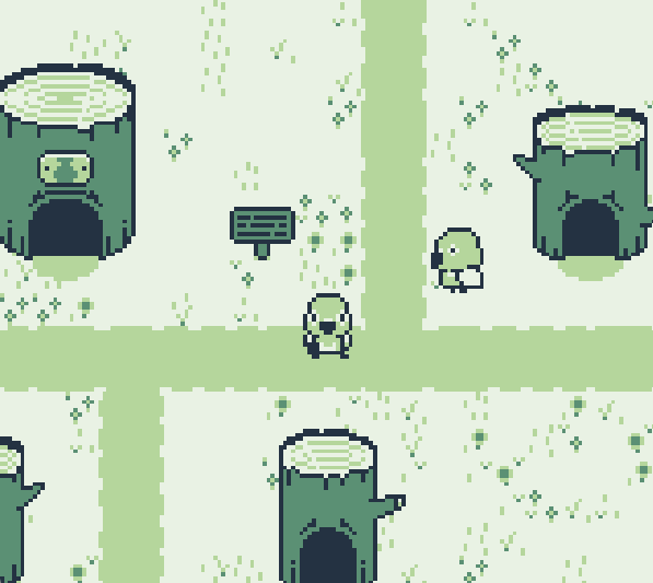 A tiny Gameboy game about pigeons, made (mostly) over Summer 2024. I was playing around with GB Studio and enjoyed making funny pigeon sprites, so I came up with a little town for them to live in. I also wanted to see what I could do with platforming combat, aiming for something that feels roughly like NES Castlevania, so you can go down a cave to fight some squirrels. All art assets are my own. Music from community assets pack (https://github.com/DeerTears/GB-Studio-Community-Assets) with SFX from Tronimal (https://itch.io/queue/c/4150296/gb-studio-music-sfx-assets?game_id=1938706).